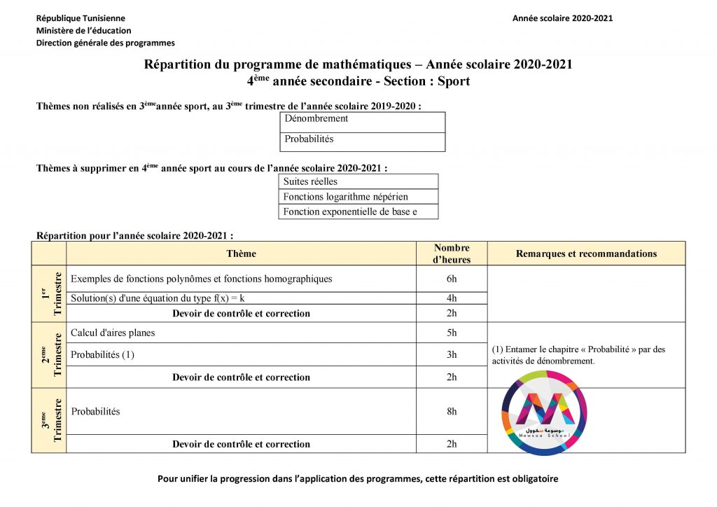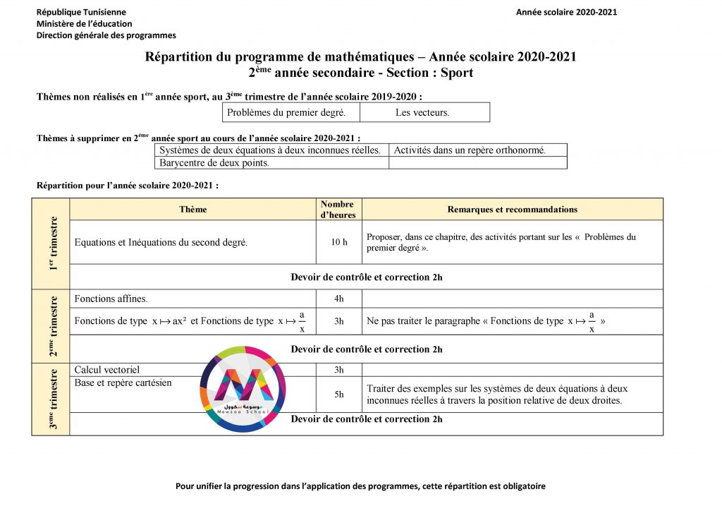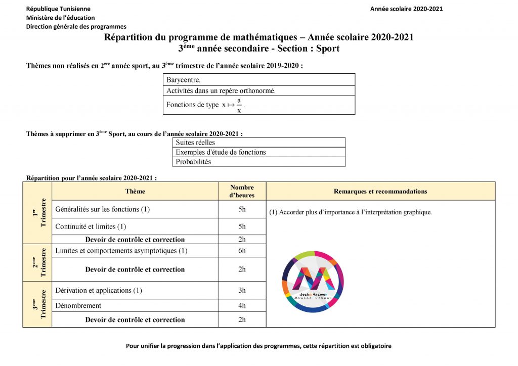 قائمة الدروس التي ستدرس في مادة الرياضيات للسنوات الثانية والثالثة والبكالوريا رياضة