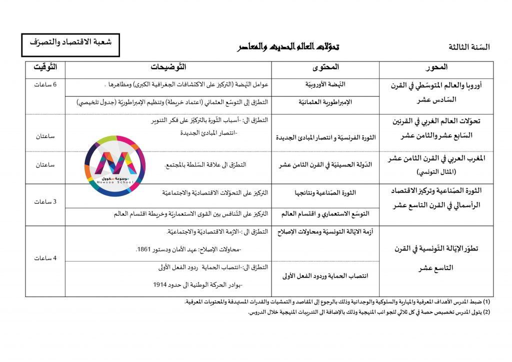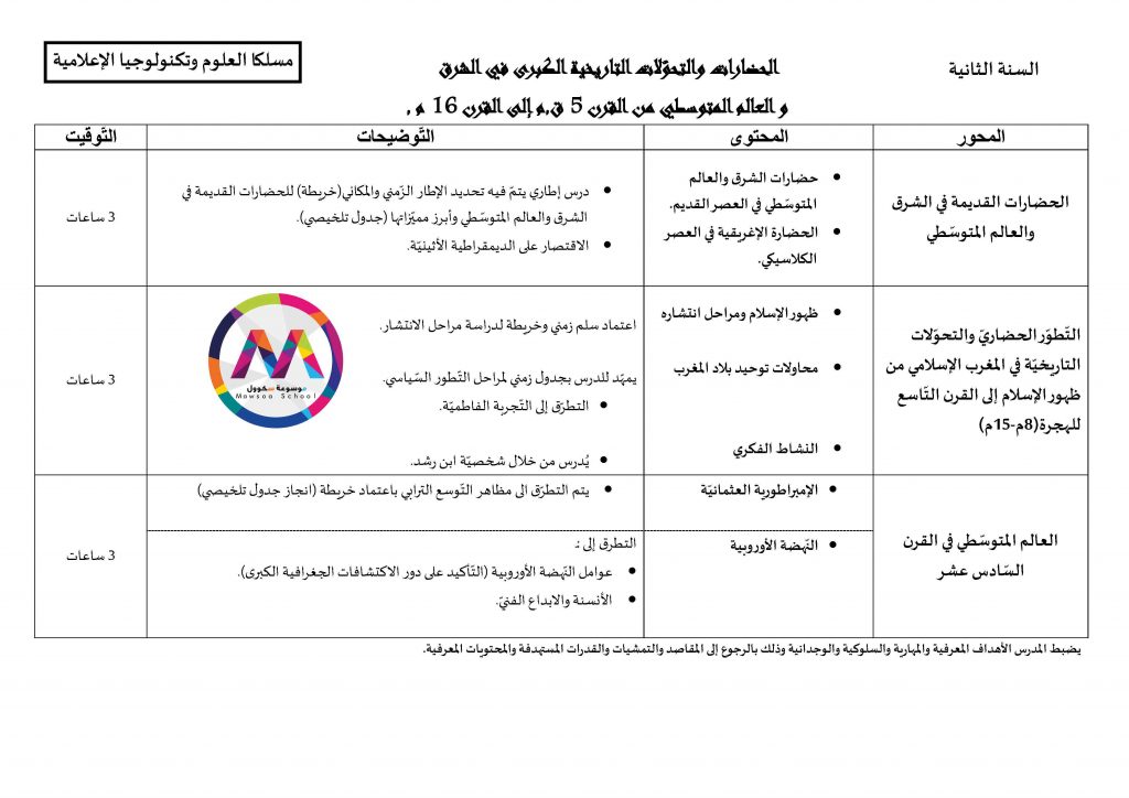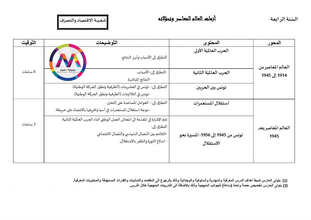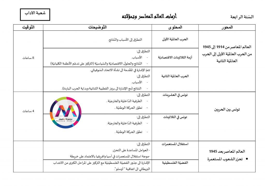 قائمة الدروس التي ستدرس في مادة التاريخ للسنوات الأولى والثانية والثالثة والبكالوريا جميع الشعب