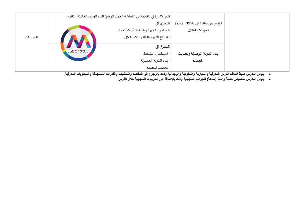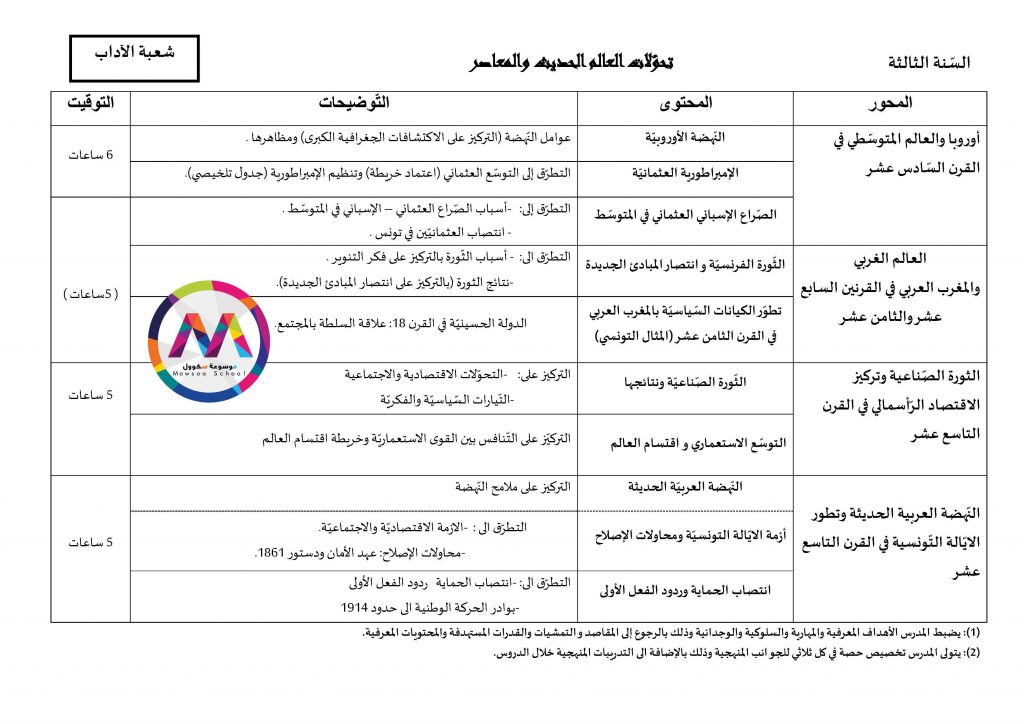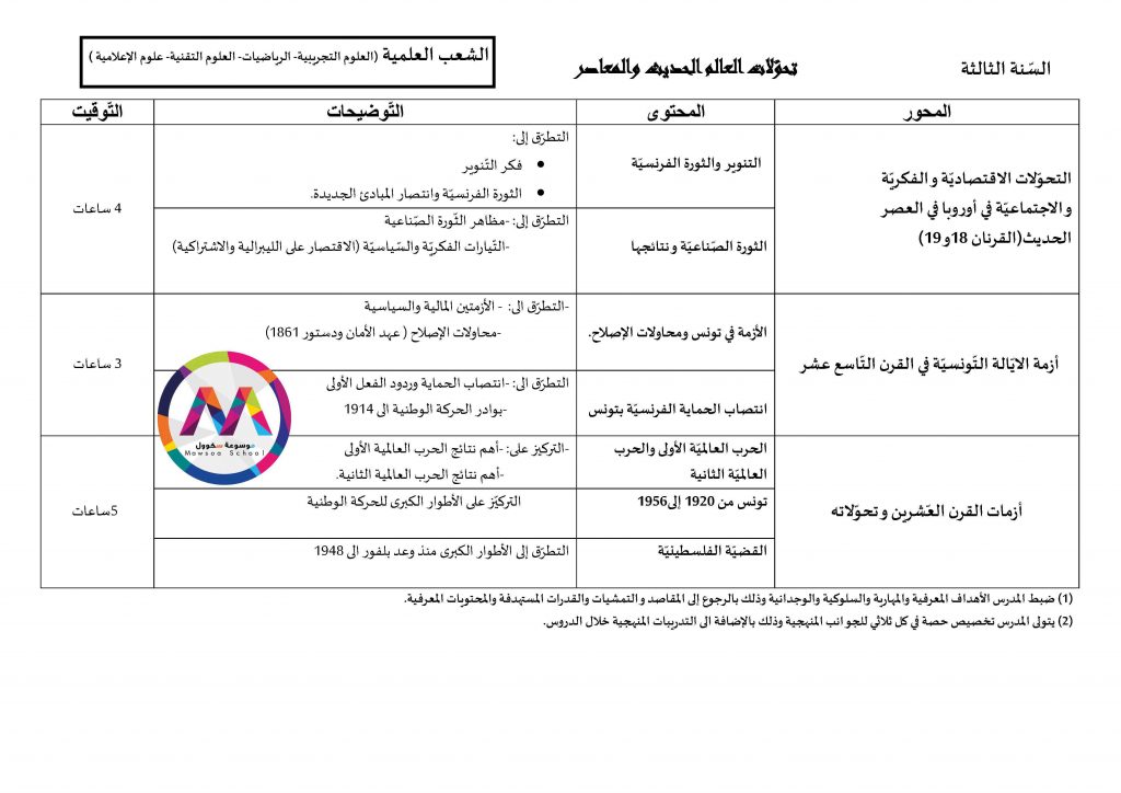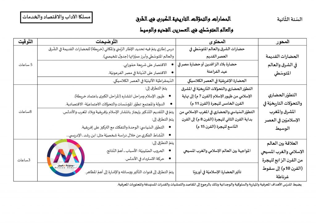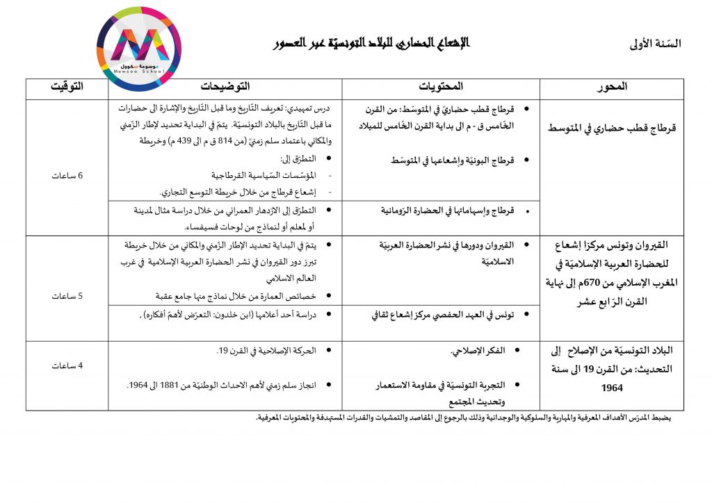 قائمة الدروس التي ستدرس في مادة التاريخ للسنوات الأولى والثانية والثالثة والبكالوريا جميع الشعب